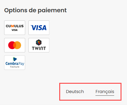 Dans la version pour ordinateur, vous pouvez sélectionner la langue souhaitée en bas à droite dans le pied de page.